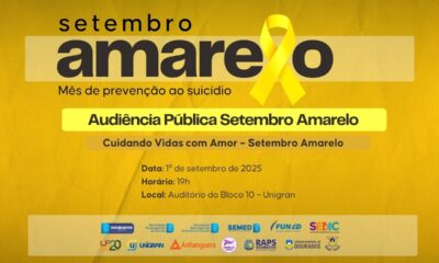 Com a audiência pública “Cuidando Vidas com Amor”, a Prefeitura de Dourados inicia na próxima segunda-feira, 1º de setembro, a campanha Setembro Amarelo 2025. O evento...