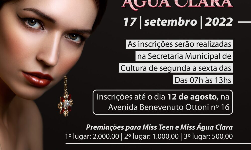 A Prefeitura Municipal, através da Secretaria de Cultura informa que as inscrições para o concurso Miss Água Clara foram prorrogadas, então se você perdeu o prazo essa é sua chance!