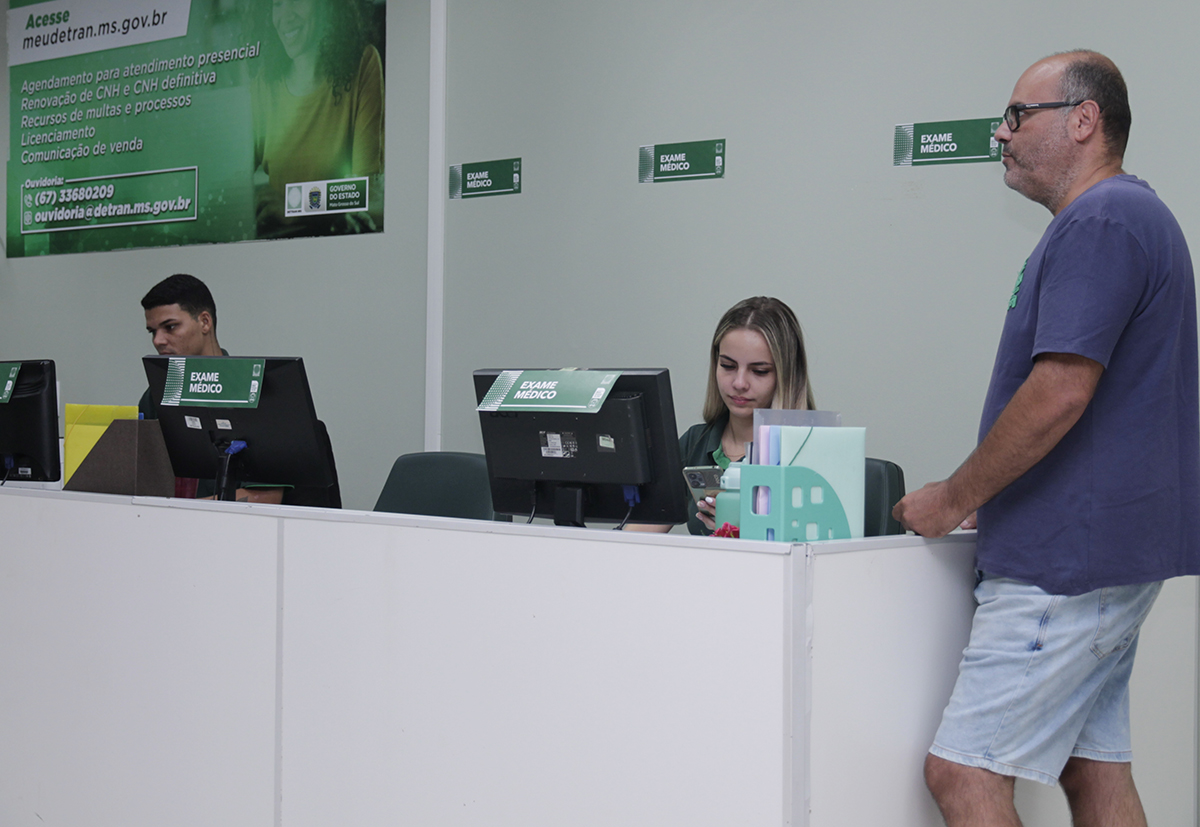 O processo de renovação é simples e rápido. Na Capital o cidadão pode iniciar o atendimento de forma totalmente digital, pelo portal ou aplicativo Meu Detran MS, informando o tipo de renovação (comum ou para atividade remunerada), confirmando dados pessoais e endereço, emitindo e pagando a guia e agendando o horário para conclusão na agência. No atendimento presencial, realiza apenas a captura de imagem e o exame médico.