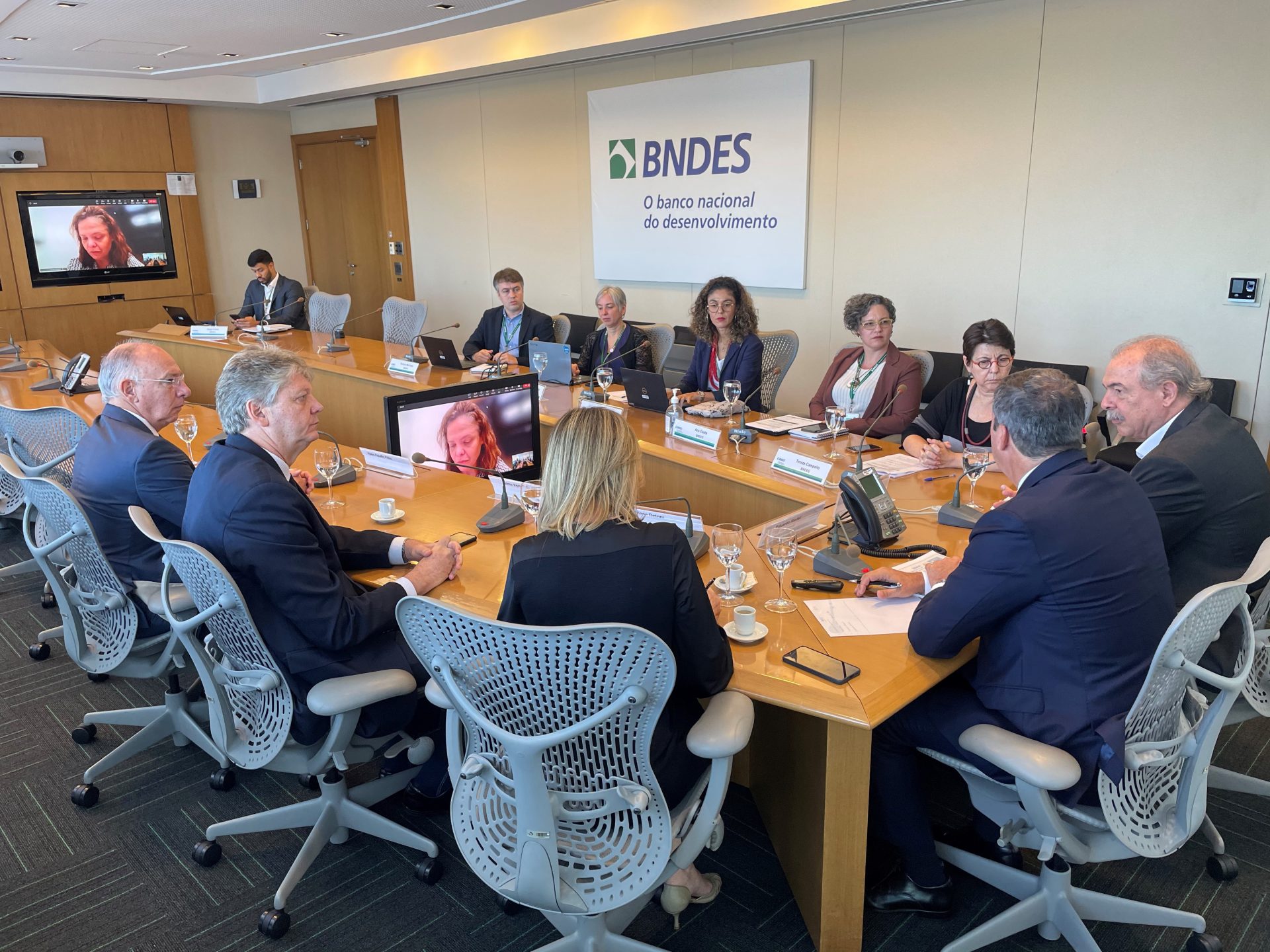 A reunião ocorreu no escritório do BNDES no Rio de Janeiro. A comitiva do Estado também contou com a presença dos secretários Jaime Verruck (Semadesc), Hélio Peluffo (Seilog) e Eliane Detoni (Escritório de Parcerias Estratégicas).