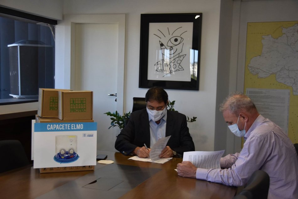 Em continuidade às ações de combate à pandemia do coronavírus em Mato Grosso do Sul, o presidente da FIEMS, Sérgio Longen, doou 34 capacetes elmo para a Secretaria Estadual de Saúde. A entrega foi feita nesta terça-feira, dia 3, ao titular da pasta, Geraldo Resende, e o objetivo é auxiliar no tratamento de pacientes internados e que necessitam de suporte ventilatório.