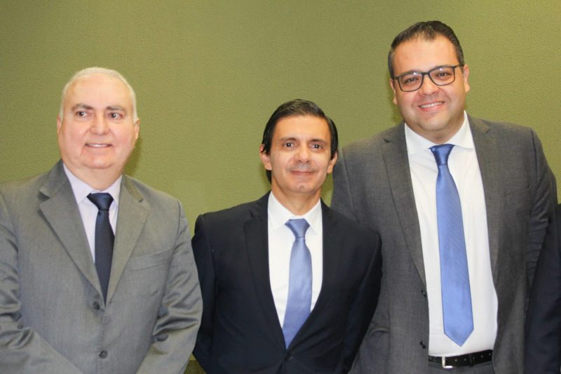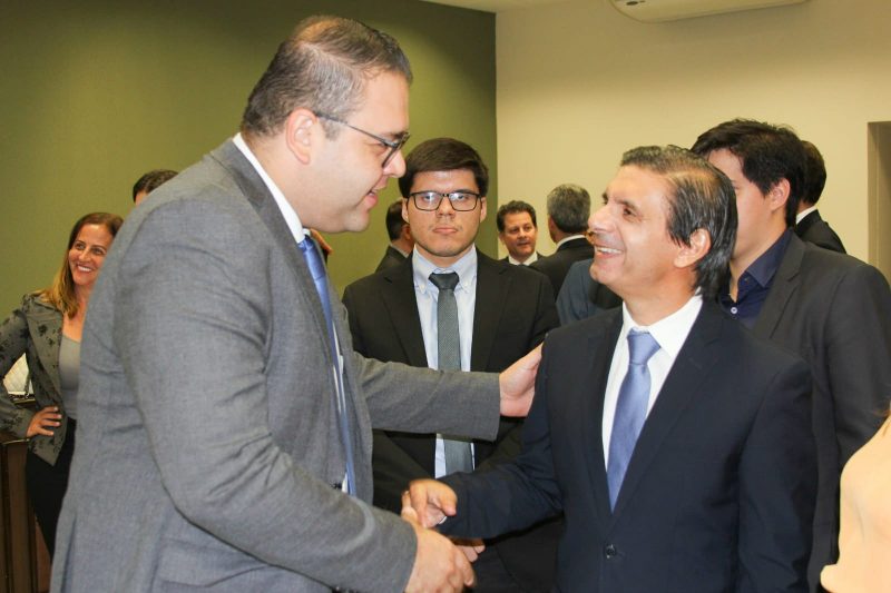 O prefeito Alan Guedes participou da cerimônia de posse do novo diretor do Foro da comarca de Dourados, o juiz César de Souza Lima, que foi empossado pelo presidente do TJMS (Tribunal de Justiça de Mato Grosso do Sul), o desembargador Sérgio Fernandes Martins, nesta segunda-feira (6).